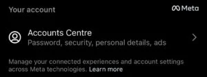 Tap “Accounts centre”.